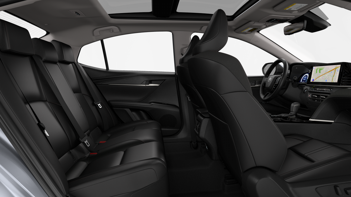 Black, 4-Wheel Disc Brakes, 6 Speakers, ABS brakes, Air Conditioning, Alloy wheels, AM/FM radio: SiriusXM, Apple CarPlay/Android Auto, Auto High-beam Headlights, Auto-dimming Rear-View mirror, Automatic temperature control, Brake assist, Bumpers: body-color, Delay-off headlights, Driver door bin, Driver vanity mirror, Dual front impact airbags, Dual front side impact airbags, Electronic Stability Control, Emergency communication system: Safety Connect (5-year trial), Exterior Parking Camera Rear, Four wheel independent suspension, Front anti-roll bar, Front Bucket Seats, Front Center Armrest, Front dual zone A/C, Front reading lights, Fully automatic headlights, Garage door transmitter: HomeLink, Heated door mirrors, Heated Front Seats, Heated front seats, Heated steering wheel, Illuminated entry, Illuminated Trunk Sill, Knee airbag, Leather and Dinamica Microfiber Seat Trim, Leather Shift Knob, Leather steering wheel, Low tire pressure warning, Navigation system: Drive Connect (1 year trial) includes Cloud Navigation with real time traffic and Google POI, Occupant sensing airbag, Outside temperature display, Overhead airbag, Overhead console, Panic alarm, Panoramic Glass Roof, Passenger door bin, Passenger vanity mirror, Power door mirrors, Power driver seat, Power passenger seat, Power steering, Power windows, Radio data system, Radio: 12.3 Toyota Multimedia Audio, Rear anti-roll bar, Rear reading lights, Rear seat center armrest, Rear window defroster, Remote keyless entry, Security system, Speed control, Speed-sensing steering, Split folding rear seat, Steering wheel mounted audio controls, Telescoping steering wheel, Tilt steering wheel, Traction control, Trip computer, Turn signal indicator mirrors, Variably intermittent wipers, and Wheels: 18 2-Tone Multi-Spoke Machined and Black Finished. Black.