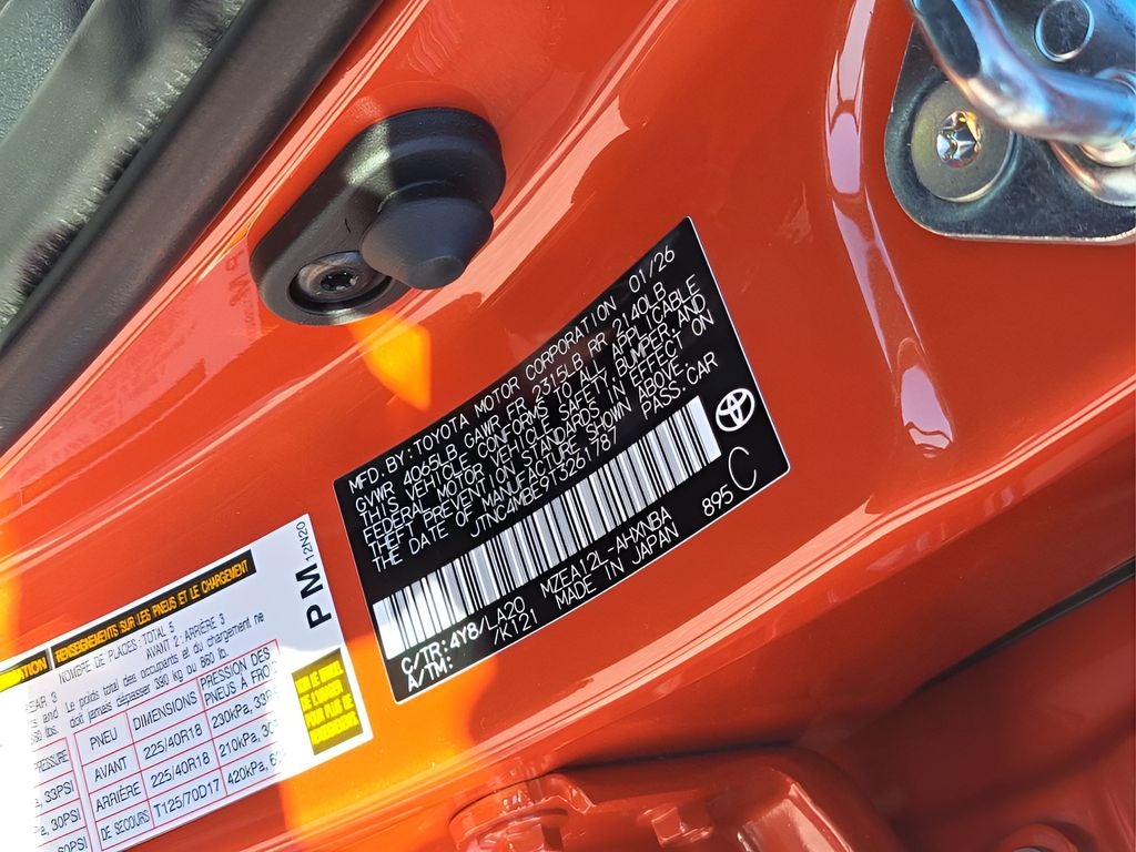 4-Wheel Disc Brakes, 8 Speakers, ABS brakes, Air Conditioning, Alloy wheels, AM/FM radio: SiriusXM, Auto High-beam Headlights, Automatic temperature control, Brake assist, Bumpers: body-color, Compass, Delay-off headlights, Driver door bin, Driver vanity mirror, Dual front impact airbags, Dual front side impact airbags, Electronic Stability Control, Emergency communication system: Safety Connect (up to 10-year trial subscription), Exterior Parking Camera Rear, Four wheel independent suspension, Front anti-roll bar, Front Bucket Seats, Front Center Armrest, Front dual zone A/C, Front fog lights, Front reading lights, Heated door mirrors, Heated front seats, Heated Sport Front Seats, Illuminated entry, Knee airbag, Leather Shift Knob, Leather steering wheel, Low tire pressure warning, Occupant sensing airbag, Outside temperature display, Overhead airbag, Overhead console, Panic alarm, Passenger door bin, Passenger vanity mirror, Power door mirrors, Power driver seat, Power steering, Power windows, Radio data system, Radio: 8 Toyota Audio Multimedia, Rear anti-roll bar, Rear seat center armrest, Rear side impact airbag, Rear window defroster, Rear window wiper, Remote keyless entry, Security system, SofTex Seat Trim with Fabric Inserts, Speed control, Speed-sensing steering, Split folding rear seat, Spoiler, Steering wheel mounted audio controls, Tachometer, Telescoping steering wheel, Tilt steering wheel, Traction control, Trip computer, Turn signal indicator mirrors, Variably intermittent wipers, and Wheels: 18 Graphite-Colored Alloy.
