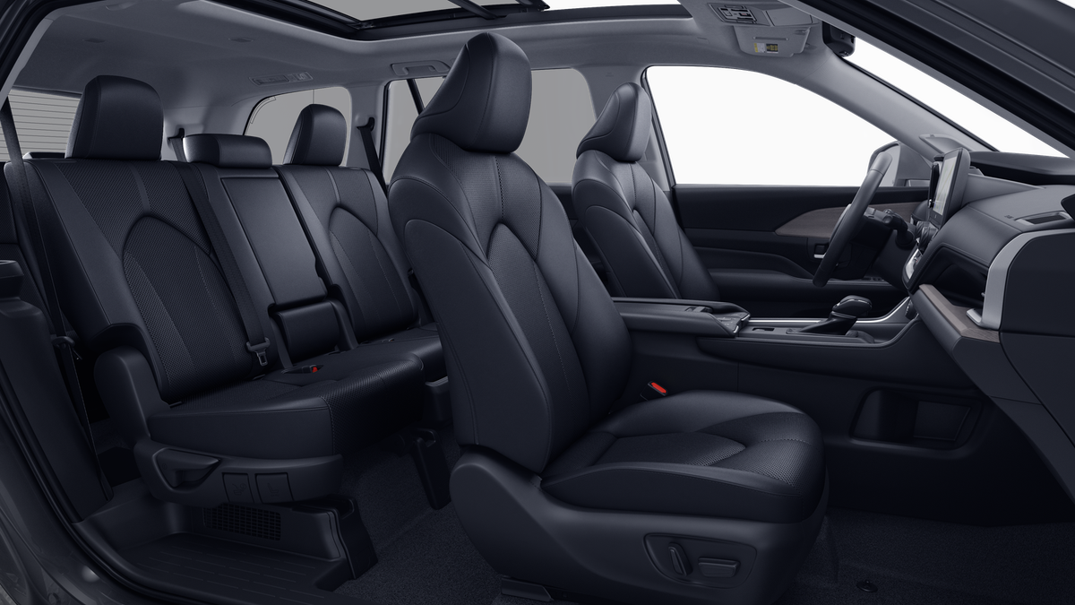 2.5L 4-Cylinder 16V, 11 Speakers, 20 Wheels, 3rd row seats: split-bench, 4-Wheel Disc Brakes, 60/40 Rear Bench Seat, ABS brakes, Air Conditioning, Alloy wheels, AM/FM radio: SiriusXM, Apple CarPlay/Android Auto, Auto High-beam Headlights, Auto-dimming Rear-View mirror, Automatic temperature control, Brake assist, Bumpers: body-color, Delay-off headlights, Driver door bin, Driver vanity mirror, Dual front impact airbags, Dual front side impact airbags, Electronic Stability Control, Emergency communication system: Safety Connect (up to 10-year trial subscription), Exterior Parking Camera Rear, Four wheel independent suspension, Front anti-roll bar, Front Bucket Seats, Front Center Armrest, Front dual zone A/C, Front fog lights, Front reading lights, Fully automatic headlights, Garage door transmitter: HomeLink, Heated and Ventilated Front Seats, Heated door mirrors, Heated front seats, Heated rear seats, Heated steering wheel, Illuminated Cargo Sill, Illuminated entry, Knee airbag, Leather Seat Trim, Leather Shift Knob, Leather steering wheel, Low tire pressure warning, Memory seat, Mudguards, Navigation system: Drive Connect Cloud Navigation (1-year trial subscription), Occupant sensing airbag, Outside temperature display, Overhead airbag, Overhead console, Panic alarm, Panoramic View Monitor, Passenger door bin, Passenger vanity mirror, Power door mirrors, Power driver seat, Power Liftgate, Power passenger seat, Power steering, Power Tilt/Slide Panoramic Rood with Power Sunshade, Power windows, Premium Paint, Radio: 12.3 Toyota Audio Multimedia with JBL Audio, Rain sensing wipers, Rear air conditioning, Rear anti-roll bar, Rear Hatch Cargo Lamps, Rear reading lights, Rear window defroster, Rear window wiper, Reclining 3rd row seat, Remote keyless entry, Security system, Speed control, Speed-sensing steering, Split folding rear seat, Spoiler, Steering wheel mounted audio controls, Telescoping steering wheel, Tilt steering wheel, Traction control, Trip computer, Turn signal indicator mirrors, Variably intermittent wipers, Ventilated front seats, Wheels: 20 Black, and Wheels: 20 Silver Multi-Spoke Aluminum. 2.5L 4-Cylinder 16V.