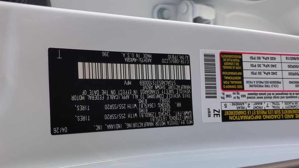 - Front Tire Size: P255/55VR20