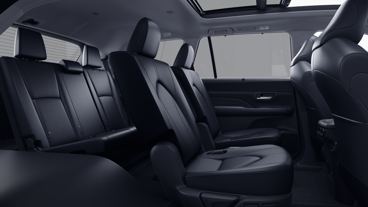 2.5L 4-Cylinder 16V, 11 Speakers, 3rd row seats: split-bench, 4-Wheel Disc Brakes, ABS brakes, Air Conditioning, Alloy wheels, AM/FM radio: SiriusXM, Apple CarPlay/Android Auto, Auto High-beam Headlights, Auto-dimming Rear-View mirror, Automatic temperature control, Brake assist, Bumpers: body-color, Delay-off headlights, Driver door bin, Driver vanity mirror, Dual front impact airbags, Dual front side impact airbags, Electronic Stability Control, Emergency communication system: Safety Connect (up to 10-year trial subscription), Exterior Parking Camera Rear, Four wheel independent suspension, Front anti-roll bar, Front Bucket Seats, Front Center Armrest, Front dual zone A/C, Front fog lights, Front reading lights, Fully automatic headlights, Garage door transmitter: HomeLink, Heated and Ventilated Front Seats, Heated door mirrors, Heated front seats, Heated rear seats, Heated steering wheel, Illuminated Cargo Sill, Illuminated entry, Knee airbag, Leather Seat Trim, Leather Shift Knob, Leather steering wheel, Low tire pressure warning, Memory seat, Mudguards, Navigation system: Drive Connect Cloud Navigation (1-year trial subscription), Occupant sensing airbag, Outside temperature display, Overhead airbag, Overhead console, Panic alarm, Passenger door bin, Passenger vanity mirror, Power door mirrors, Power driver seat, Power Liftgate, Power passenger seat, Power steering, Power Tilt/Slide Panoramic Rood with Power Sunshade, Power windows, Premium Paint, Radio: 12.3 Toyota Audio Multimedia with JBL Audio, Rain sensing wipers, Rear air conditioning, Rear anti-roll bar, Rear Hatch Cargo Lamps, Rear reading lights, Rear window defroster, Rear window wiper, Reclining 3rd row seat, Remote keyless entry, Security system, Speed control, Speed-sensing steering, Split folding rear seat, Spoiler, Steering wheel mounted audio controls, Telescoping steering wheel, Tilt steering wheel, Tow Hitch, Traction control, Trip computer, Turn signal indicator mirrors, Variably intermittent wipers, Ventilated front seats, and Wheels: 20 Silver Multi-Spoke Aluminum. 2.5L 4-Cylinder 16V.