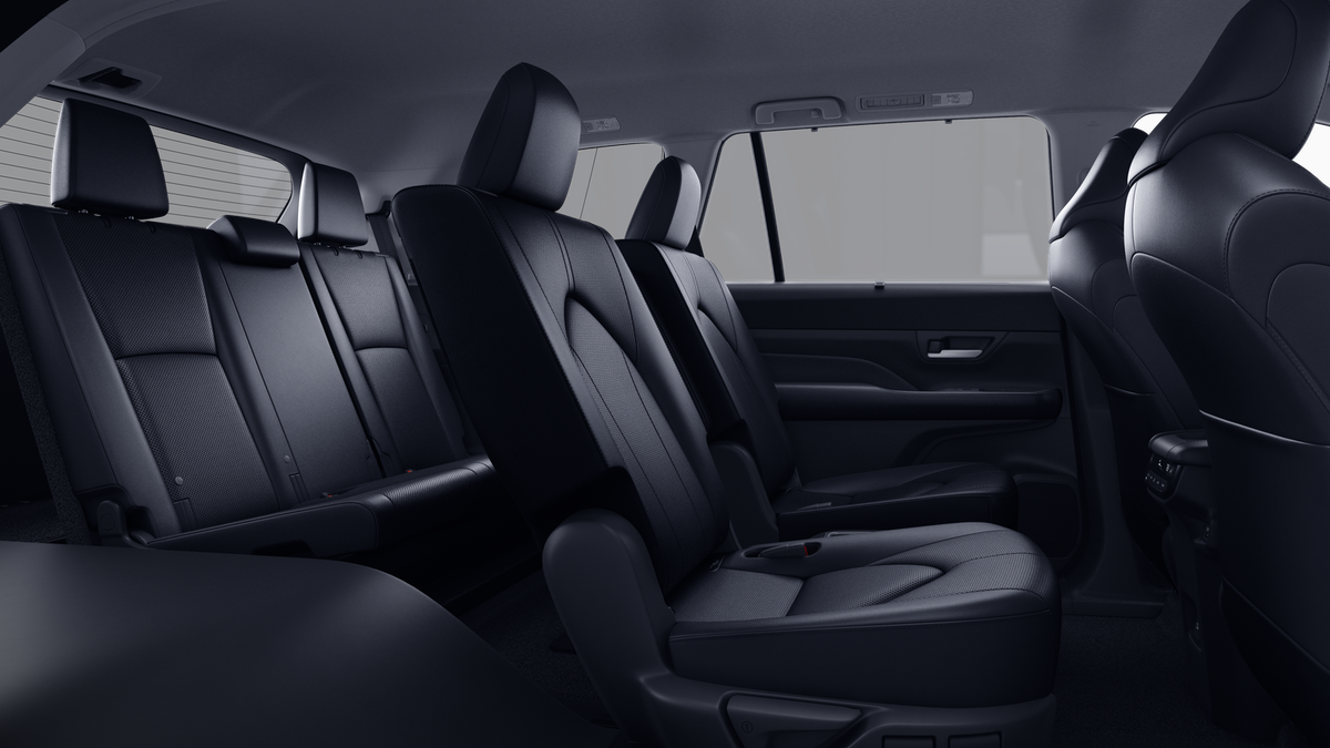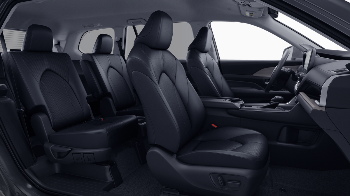 11 Speakers, 3rd row seats: split-bench, 4-Wheel Disc Brakes, ABS brakes, Air Conditioning, Alloy wheels, AM/FM radio: SiriusXM, Apple CarPlay/Android Auto, Auto High-beam Headlights, Auto-dimming Rear-View mirror, Automatic temperature control, Brake assist, Bumpers: body-color, Delay-off headlights, Driver door bin, Driver vanity mirror, Dual front impact airbags, Dual front side impact airbags, Electronic Stability Control, Emergency communication system: Safety Connect (up to 10-year trial subscription), Exterior Parking Camera Rear, Four wheel independent suspension, Front anti-roll bar, Front Bucket Seats, Front Center Armrest, Front dual zone A/C, Front fog lights, Front reading lights, Fully automatic headlights, Garage door transmitter: HomeLink, Heated and Ventilated Front Seats, Heated door mirrors, Heated front seats, Heated rear seats, Heated steering wheel, Illuminated Cargo Sill, Illuminated entry, Knee airbag, Leather Seat Trim, Leather Shift Knob, Leather steering wheel, Low tire pressure warning, Memory seat, Mudguards, Navigation system: Drive Connect Cloud Navigation (1-year trial subscription), Occupant sensing airbag, Outside temperature display, Overhead airbag, Overhead console, Panic alarm, Panoramic View Monitor, Passenger door bin, Passenger vanity mirror, Power door mirrors, Power driver seat, Power Liftgate, Power passenger seat, Power steering, Power Tilt/Slide Panoramic Rood with Power Sunshade, Power windows, Radio: 12.3 Toyota Audio Multimedia with JBL Audio, Rain sensing wipers, Rear air conditioning, Rear anti-roll bar, Rear Hatch Cargo Lamps, Rear reading lights, Rear window defroster, Rear window wiper, Reclining 3rd row seat, Remote keyless entry, Security system, Speed control, Speed-sensing steering, Split folding rear seat, Spoiler, Steering wheel mounted audio controls, Tachometer, Telescoping steering wheel, Tilt steering wheel, Tow Hitch, Traction control, Trip computer, Turn signal indicator mirrors, Variably intermittent wipers, Ventilated front seats, and Wheels: 20 Silver Multi-Spoke Aluminum.