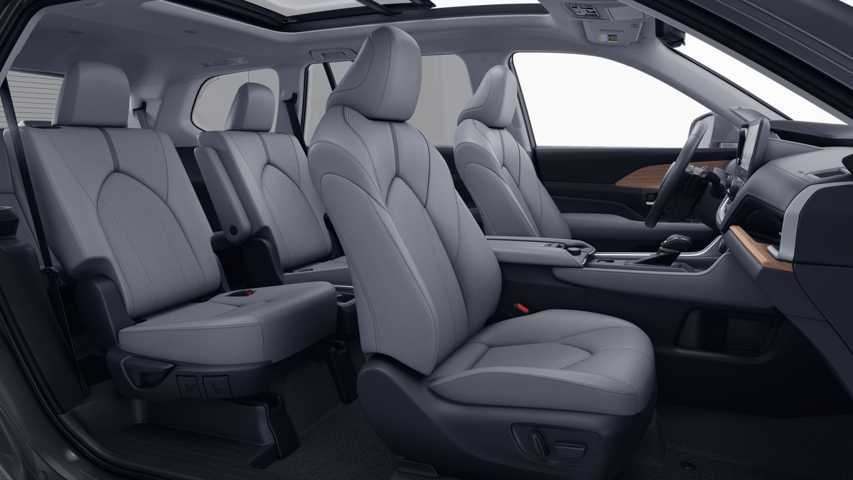 11 Speakers, 20 Wheels, 3rd row seats: split-bench, 4-Wheel Disc Brakes, ABS brakes, Air Conditioning, Alloy wheels, AM/FM radio: SiriusXM, Apple CarPlay/Android Auto, Auto High-beam Headlights, Auto-dimming Rear-View mirror, Automatic temperature control, Brake assist, Bumpers: body-color, Delay-off headlights, Driver door bin, Driver vanity mirror, Dual front impact airbags, Dual front side impact airbags, Electronic Stability Control, Emergency communication system: Safety Connect (up to 10-year trial subscription), Exterior Parking Camera Rear, Four wheel independent suspension, Front anti-roll bar, Front Bucket Seats, Front Center Armrest, Front dual zone A/C, Front fog lights, Front reading lights, Fully automatic headlights, Garage door transmitter: HomeLink, Heads-Up Display, Heated and Ventilated Front Seats, Heated door mirrors, Heated front seats, Heated rear seats, Heated steering wheel, Illuminated Cargo Sill, Illuminated entry, Knee airbag, Leather Seat Trim, Leather Shift Knob, Leather steering wheel, Low tire pressure warning, Memory seat, Mudguards, Navigation system: Drive Connect Cloud Navigation (1-year trial subscription), Occupant sensing airbag, Outside temperature display, Overhead airbag, Overhead console, Panic alarm, Passenger door bin, Passenger vanity mirror, Power door mirrors, Power driver seat, Power Liftgate, Power moonroof, Power passenger seat, Power steering, Power windows, Premium Paint, Radio: 12.3 Toyota Audio Multimedia with JBL Audio, Rain sensing wipers, Rear air conditioning, Rear anti-roll bar, Rear reading lights, Rear window defroster, Rear window wiper, Reclining 3rd row seat, Remote keyless entry, Security system, Speed control, Speed-sensing steering, Split folding rear seat, Spoiler, Steering wheel mounted audio controls, Tachometer, Telescoping steering wheel, Tilt steering wheel, Traction control, Trip computer, Turn signal indicator mirrors, Variably intermittent wipers, Ventilated front seats, Ventilated rear seats, Wheels: 20 Black, and Wheels: 20 Silver Multi-Spoke Aluminum.
