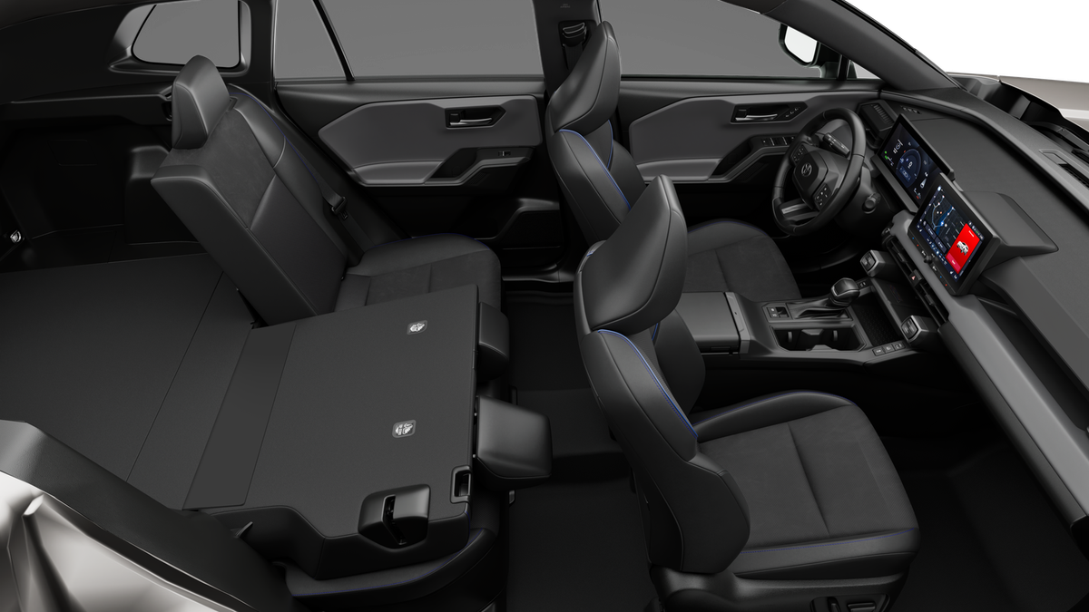 • 60/40 split reclining fold-flat rear seat with center armrest and cup holders
