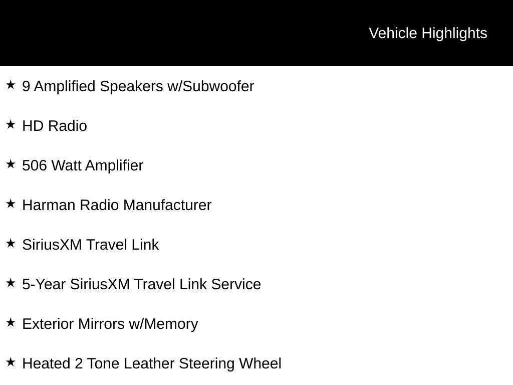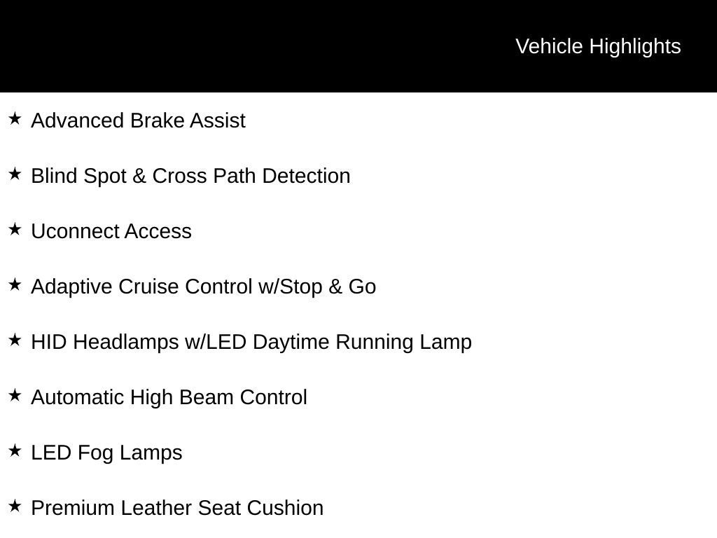 - Radio: Uconnect 8.4AN AM/FM/SXM/HD/BT/NAV
