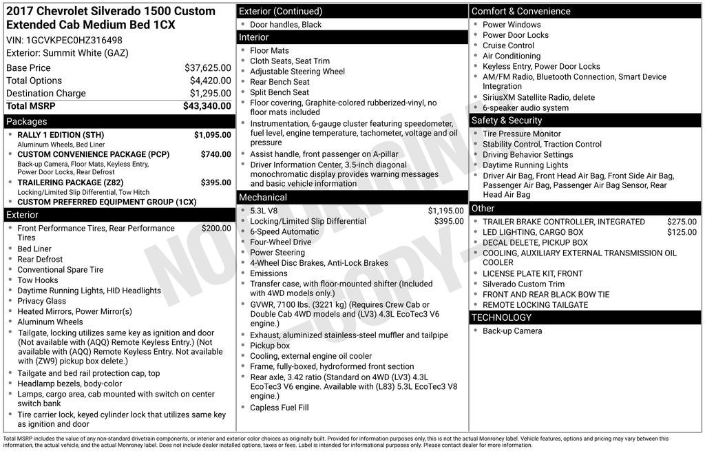 *Prices are PLUS tax, tag, title fee, $1,299 Pre-Delivery Service Fee** and $585 Electronic Tag Registration Service Fee** and dealer installed options (see dealer for details). A copy of the advertisement must be presented at time of purchase to receive any special or advertised price. Prior sales are excluded. We attempt to update this inventory regularly; however, there can be lag time between the sale of a vehicle and the updating of inventory. Vehicle information is based off standard equipment and may vary from vehicle to vehicle. Call or email for complete vehicle information. All specifications, prices and equipment are subject to change without notice. ** Fees/charges represents costs and profit to the dealer for items such as inspecting, cleaning, and adjusting vehicles, and preparing documents related to the sale.