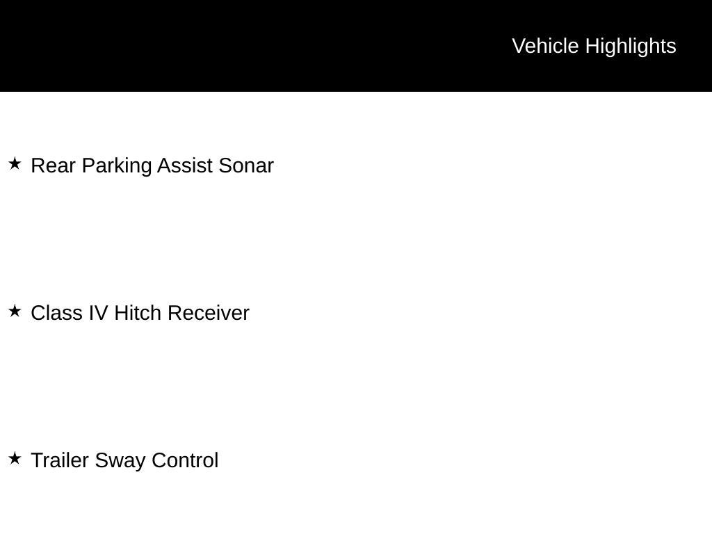 V6 Tow Package: Class IV Towing Receiver Hitch, ATF Cooler (Not Available On Manual Transmission), Engine Oil Cooler, Power Steering Cooler, 130-Amp Alternator, 4 & 7-Pin Connector w/Converter, and Trailer-Sway Control (TSC) ($0)