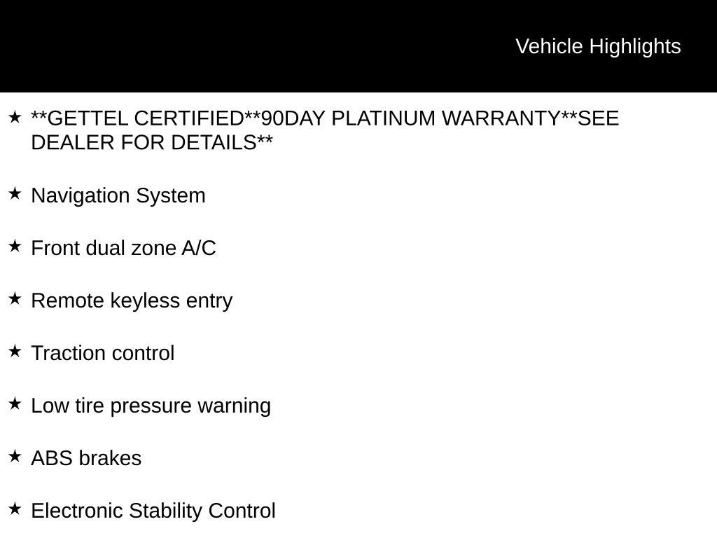 - **GETTEL CERTIFIED**90DAY PLATINUM WARRANTY**SEE DEALER FOR DETAILS**