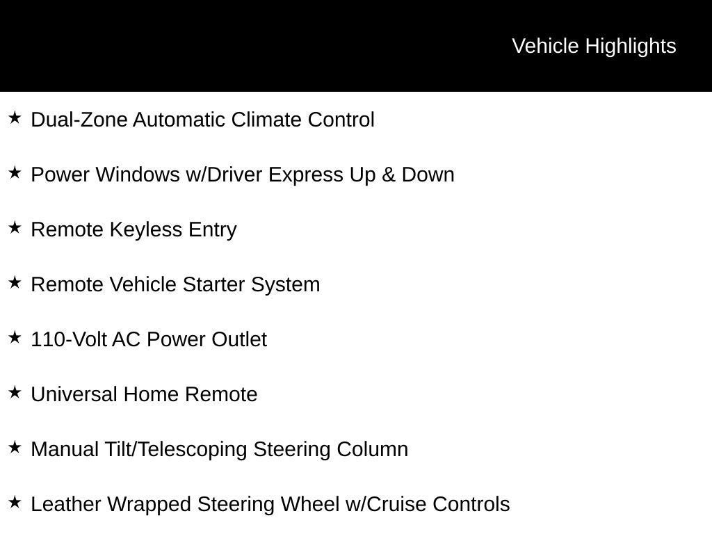 *Prices are PLUS tax, tag, title fee, $1,299 Pre-Delivery Service Fee** and $585 Electronic Tag Registration Service Fee** and dealer installed options (see dealer for details). A copy of the advertisement must be presented at time of purchase to receive any special or advertised price. Prior sales are excluded. We attempt to update this inventory regularly; however, there can be lag time between the sale of a vehicle and the updating of inventory. Vehicle information is based off standard equipment and may vary from vehicle to vehicle. Call or email for complete vehicle information. All specifications, prices and equipment are subject to change without notice. ** Fees/charges represents costs and profit to the dealer for items such as inspecting, cleaning, and adjusting vehicles, and preparing documents related to the sale.