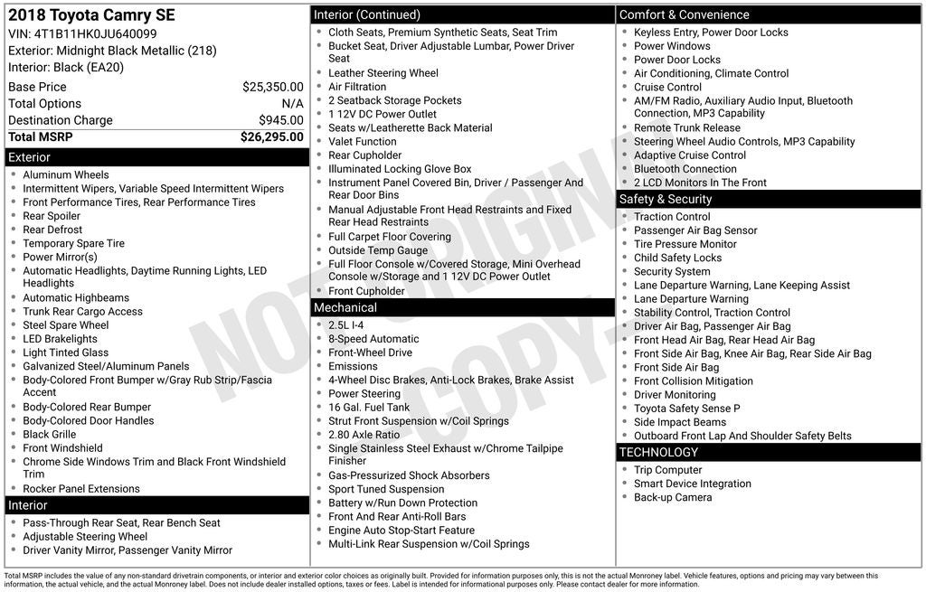 - Vehicle Name: Toyota Camry