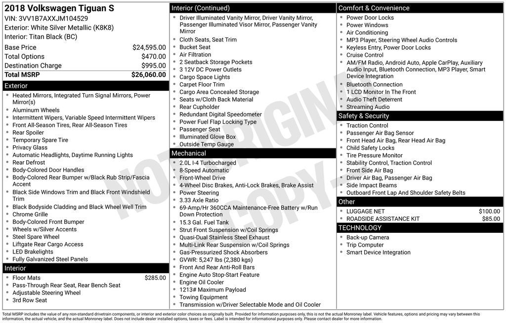 *Prices are PLUS tax, tag, title fee, $1,299 Pre-Delivery Service Fee** and $585 Electronic Tag Registration Service Fee** and dealer installed options (see dealer for details). A copy of the advertisement must be presented at time of purchase to receive any special or advertised price. Prior sales are excluded. We attempt to update this inventory regularly; however, there can be lag time between the sale of a vehicle and the updating of inventory. Vehicle information is based off standard equipment and may vary from vehicle to vehicle. Call or email for complete vehicle information. All specifications, prices and equipment are subject to change without notice. ** Fees/charges represents costs and profit to the dealer for items such as inspecting, cleaning, and adjusting vehicles, and preparing documents related to the sale.