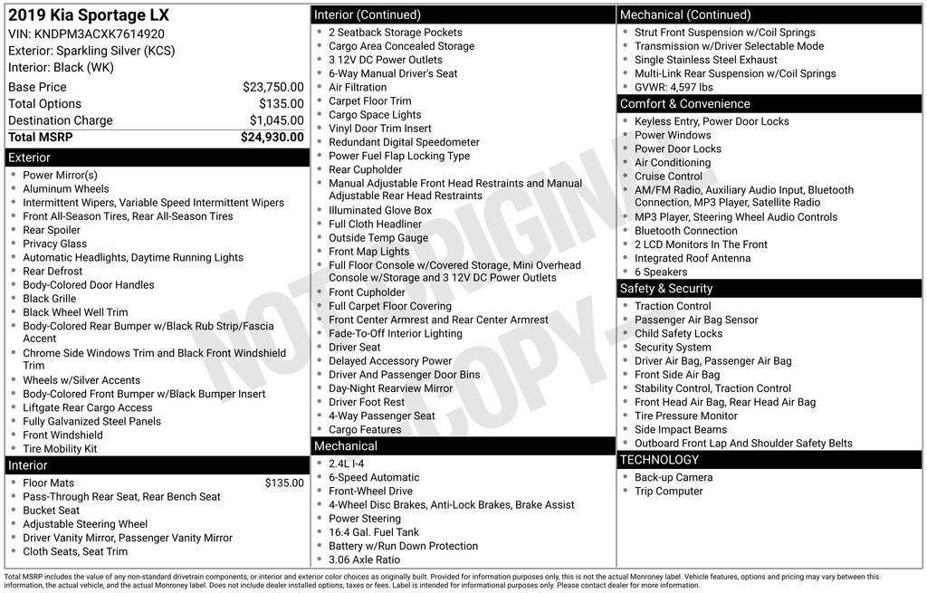 *Prices are PLUS tax, tag, title fee, $1,299 Pre-Delivery Service Fee** and $585 Electronic Tag Registration Service Fee** and dealer installed options (see dealer for details). A copy of the advertisement must be presented at time of purchase to receive any special or advertised price. Prior sales are excluded. We attempt to update this inventory regularly; however, there can be lag time between the sale of a vehicle and the updating of inventory. Vehicle information is based off standard equipment and may vary from vehicle to vehicle. Call or email for complete vehicle information. All specifications, prices and equipment are subject to change without notice. ** Fees/charges represents costs and profit to the dealer for items such as inspecting, cleaning, and adjusting vehicles, and preparing documents related to the sale.