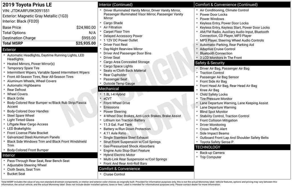 2019 Toyota PRIUS LE