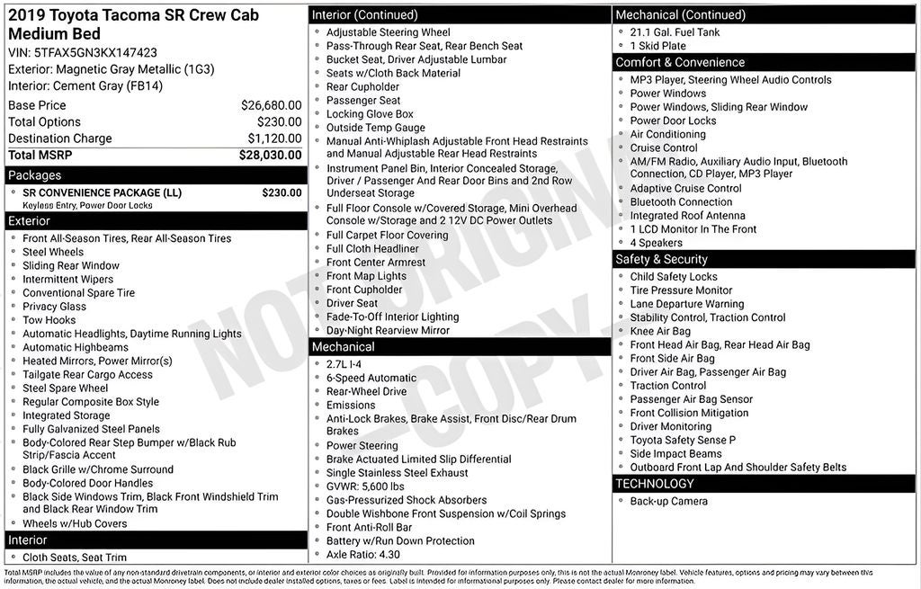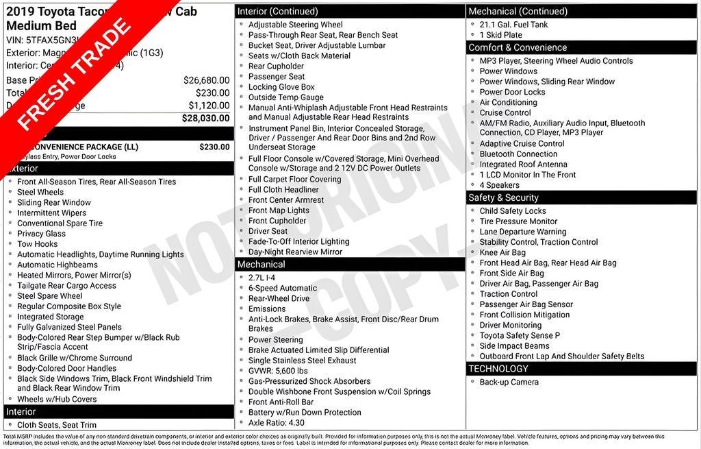- Vehicle Name: Toyota Tacoma 2WD