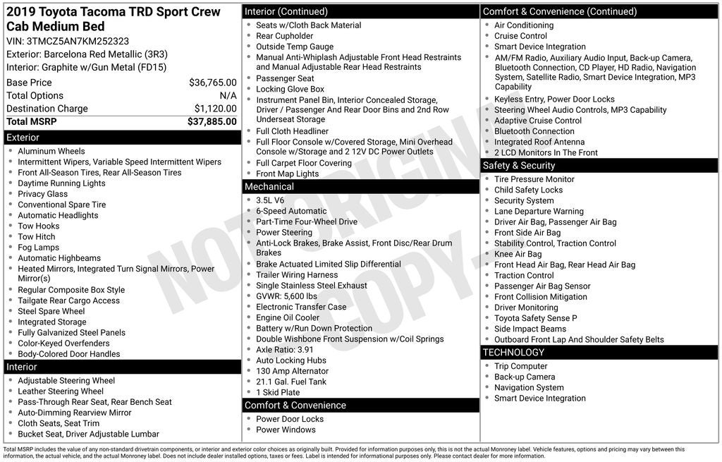 Whether you're tackling the daily commute or embarking on a rugged outdoor adventure, this 2019 Toyota Tacoma TRD Sport V6 is the perfect companion. Experience the perfect blend of power, capability, and style ā visit our showroom today and let us put you behind the wheel of this exceptional truck.