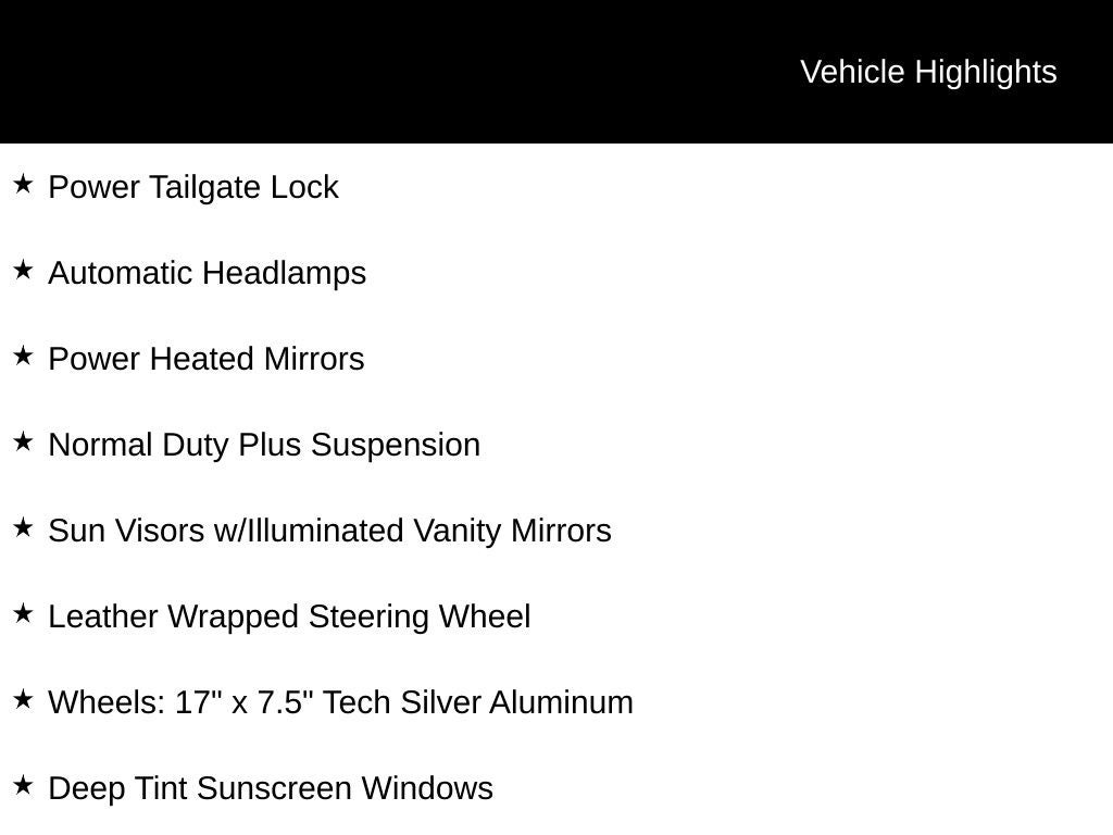 - Wheels: 17" x 7.5" Tech Silver Aluminum