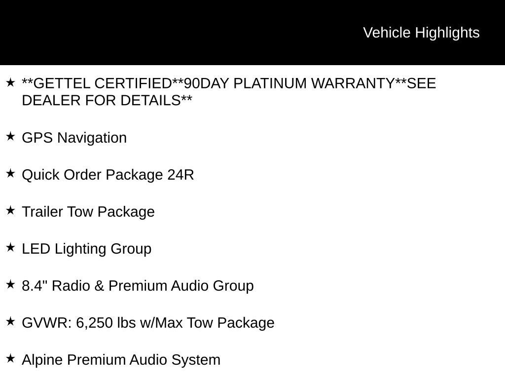 - **GETTEL CERTIFIED**90DAY PLATINUM WARRANTY**SEE DEALER FOR DETAILS**