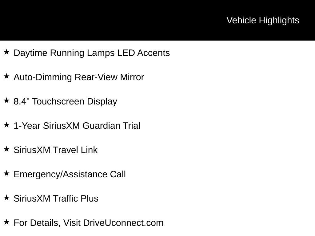 - Radio: Uconnect 4C Nav w/8.4" Display
