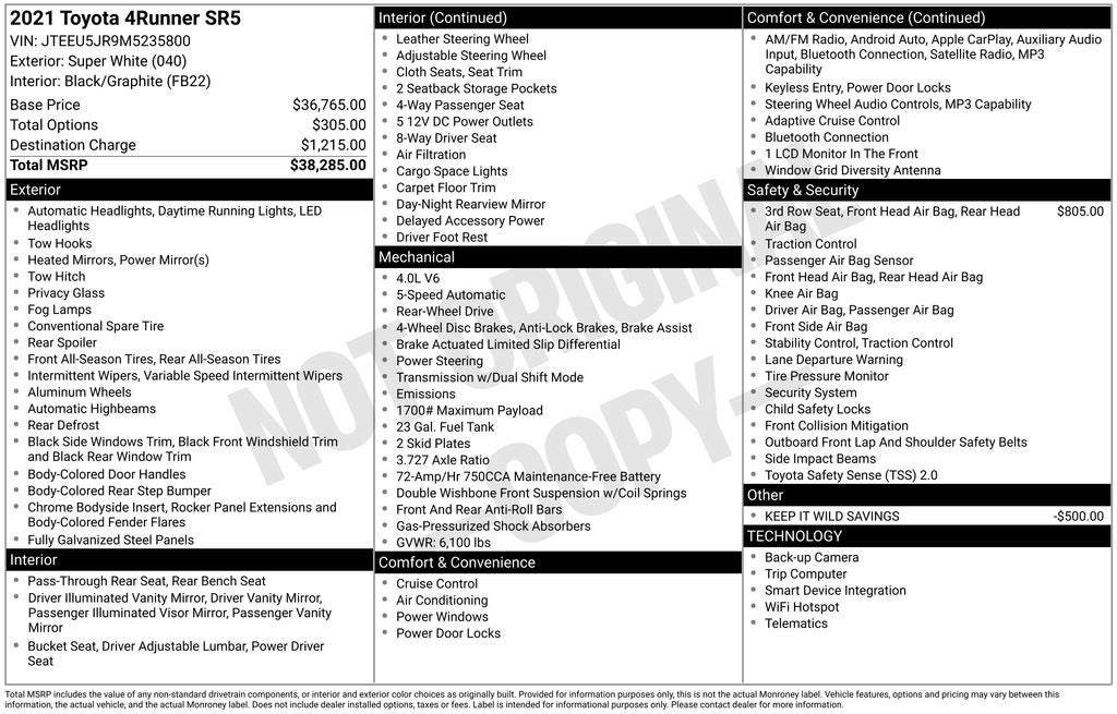 - Vehicle Name: Toyota 4Runner
