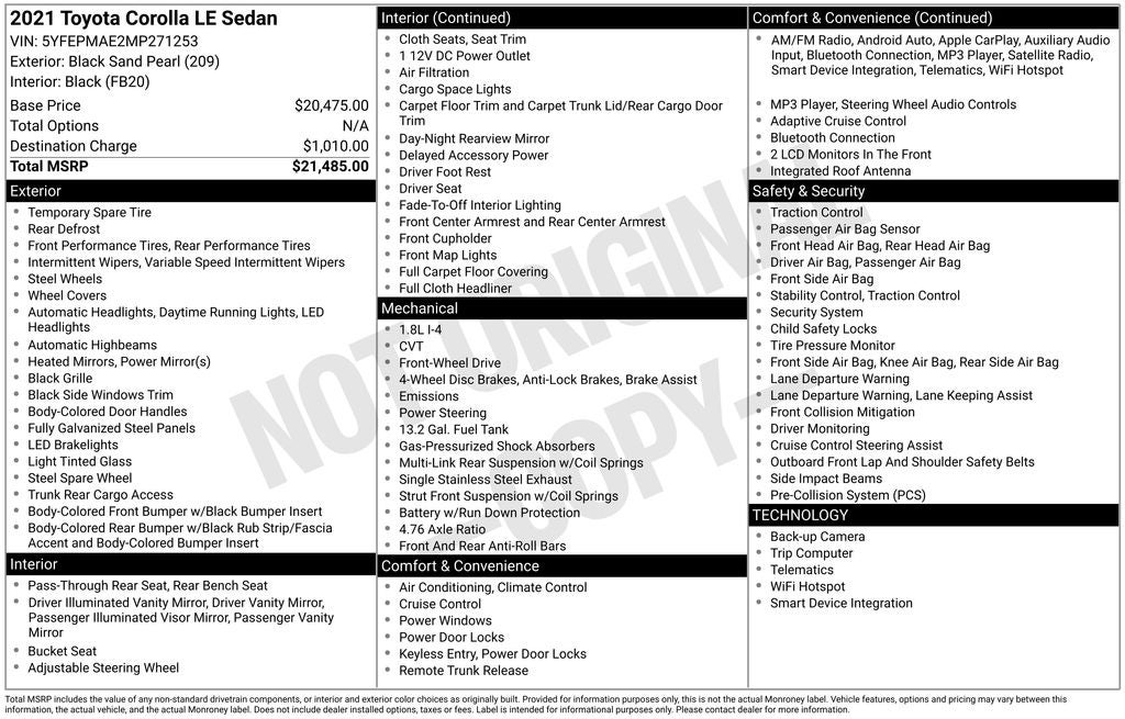 2021 Toyota COROLLA LE