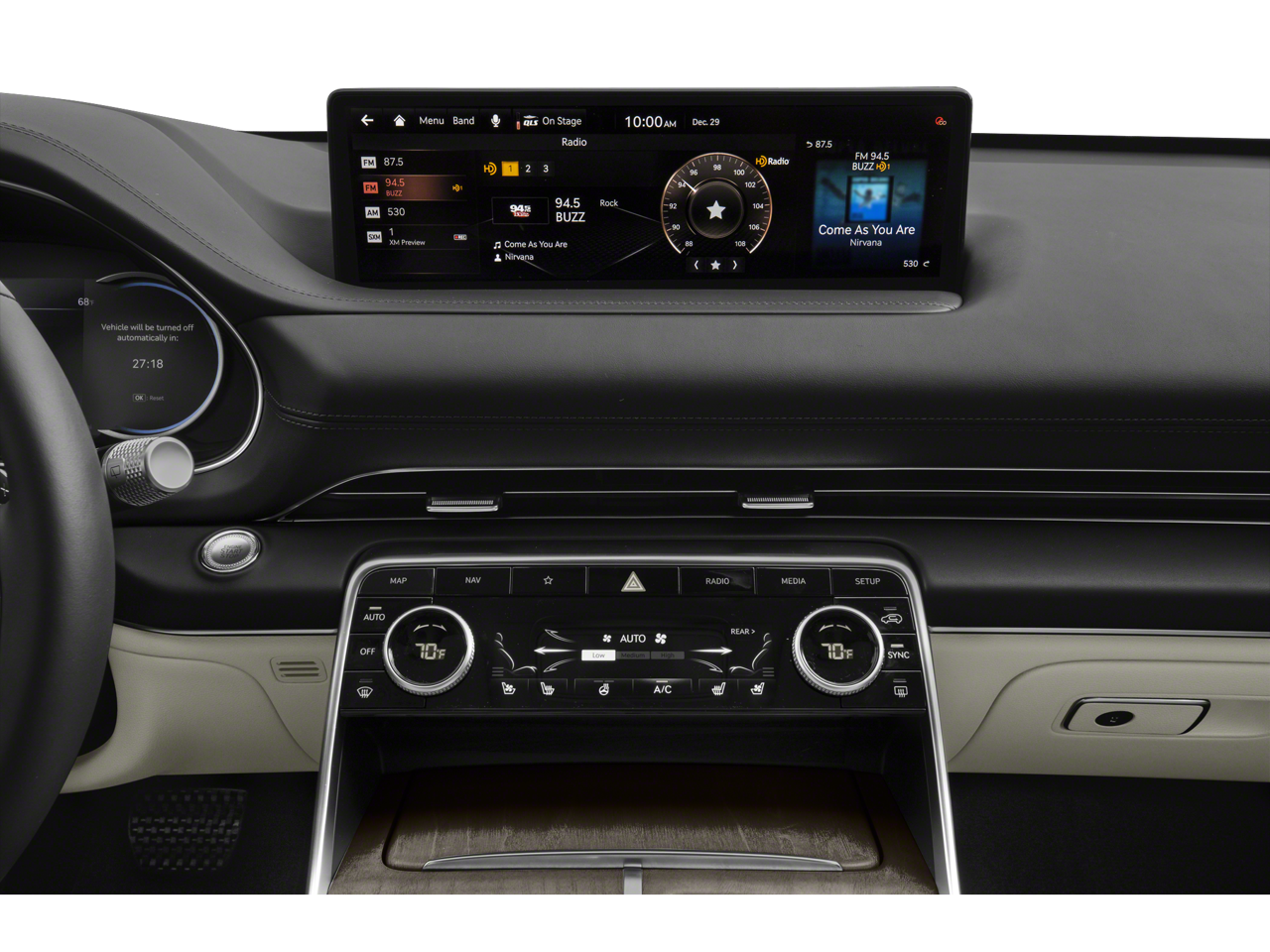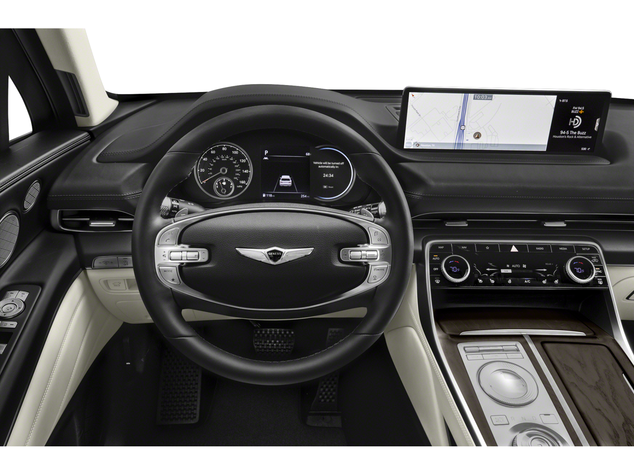 - Radio: AM/FM/SiriusXM/HD Audio System -inc: 12 speakers, 6-channel internal amplifier, integrated navigation, 14.5" HD LCD screen, Apple CarPlay and Android Auto, Bluetooth® hands-free phone system w/audio streaming, steering wheel controls, USB and Genesis Connected Services