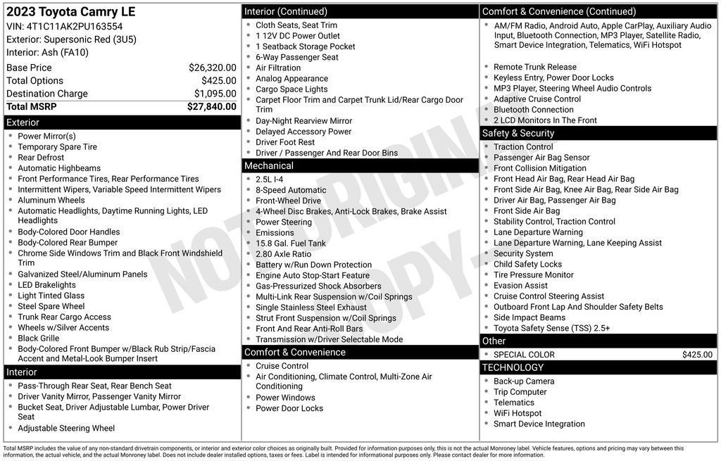 Gold Certified 2023 Toyota CAMRY LE
