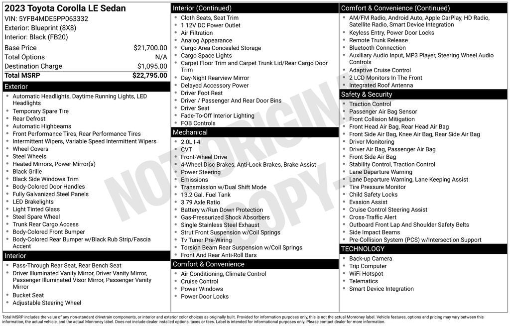 Whether you're commuting to work, running errands, or embarking on a road trip, the 2023 Toyota Corolla LE is the perfect companion. Its blend of style, efficiency, and advanced technology make it a standout in the compact sedan segment. Experience the difference for yourself ā visit our showroom today and let us demonstrate why the Corolla LE should be your next vehicle.