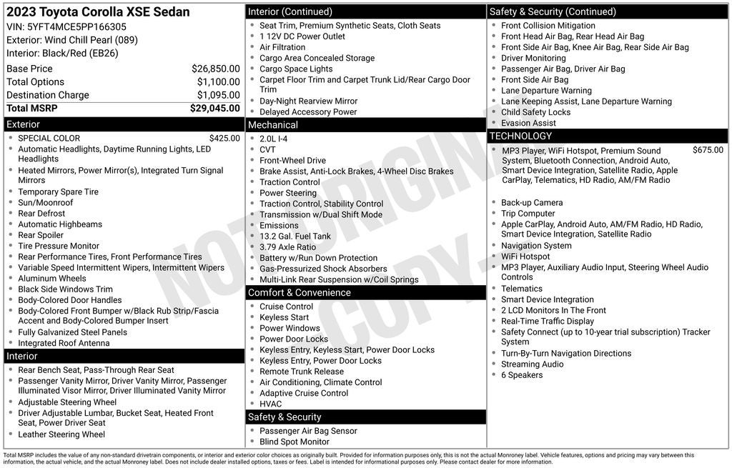 Under the hood, the Corolla XSE boasts a 2.0L I4 DOHC 16V engine paired with a smooth-shifting CVT transmission, delivering an impressive 31 city MPG and 40 highway MPG. This powertrain not only provides responsive acceleration but also exceptional fuel efficiency, making it an ideal choice for your daily commute or weekend adventures.