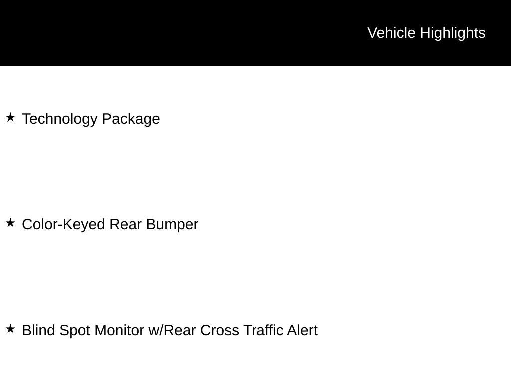 Technology Package: Blind Spot Monitor with Rear Cross Traffic Alert (Requires Colored Keyed Rear Bumper)