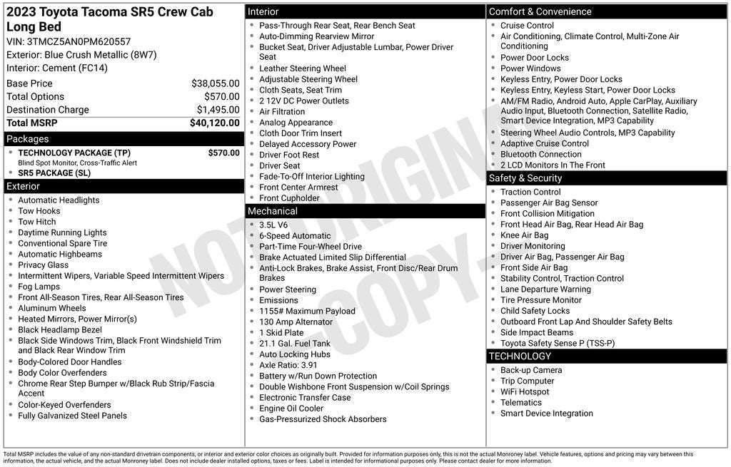 Don't miss your chance to experience the unparalleled capability and versatility of the 2023 Toyota Tacoma SR5 V6. Schedule a test drive today and see for yourself why this truck is a true leader in the midsize pickup segment.