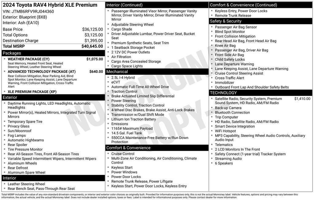 XLE Premium Grade Technology Package - Front & Rear Parking Assist w/ Automatic Braking, & Qi-Compatible Wireless Smartphone Charging ($0)
