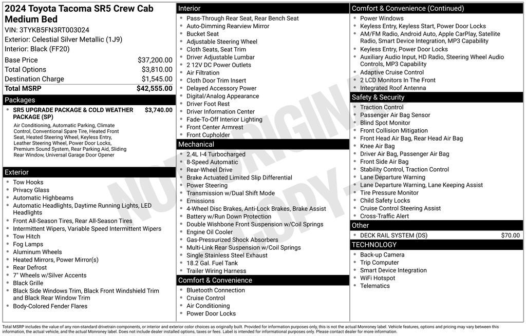 Dealer Installed Accessories do not include any additional optional accessories customer may choose to add to vehicle.