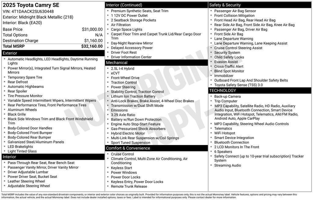 Safety is paramount in this Camry, which comes equipped with a comprehensive suite of advanced driver assistance features, including Automatic High Beams, Blind Spot Monitoring, Rear Cross-Traffic Alert, and Toyota Safety Sense 2.5+. With just 5,008 miles on the odometer, this Camry SE is a true gem, offering the perfect blend of efficiency, technology, and peace of mind.