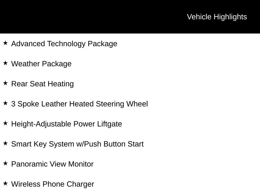 Limited Grade Advanced Technology Package - Smart Key System on All Doors & Liftgate, Hands-Free Power Liftgate, Qi-Compatible Wireless Smartphone Charging, Panoramic View Monitor