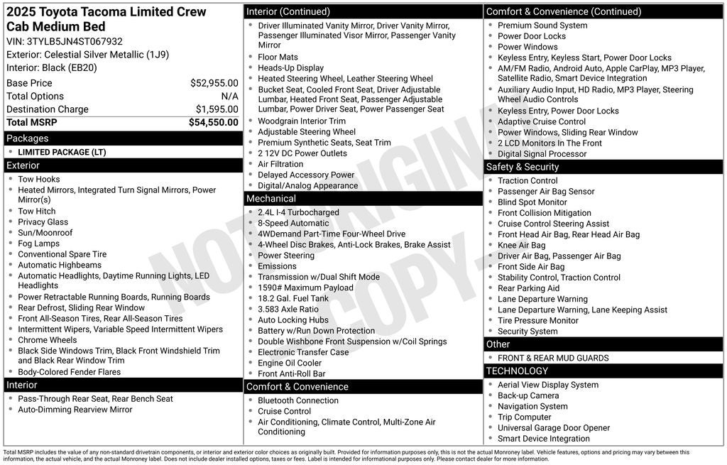 Experience the perfect blend of capability, comfort, and technology with this exceptional 2025 Toyota Tacoma Limited. Schedule a test drive today and discover how this remarkable truck can elevate your driving experience.